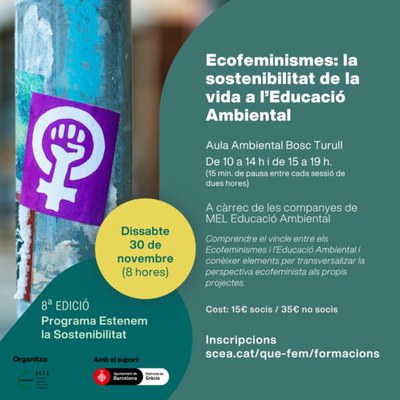 • En una societat on les violències envers les dones no paren de créixer i on les dades ens indiquen una tendència preocupant entre el jovent, que creu que el feminisme “ha anat massa lluny” (segons dades del CEO), pensem que aquest curs és més necessari que mai. L’educació ambiental pot ocupar un paper fonamental en entendre com l’ecofeminisme és l’opció de vida més justa per tothom.